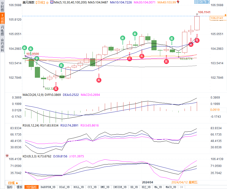 汇通财经APP讯——周五(4月12日),美国通胀走强,美联储加息的希望正在消退,美元连续狂飙,并巩固了其作为2024年表现最好的货币的地位。