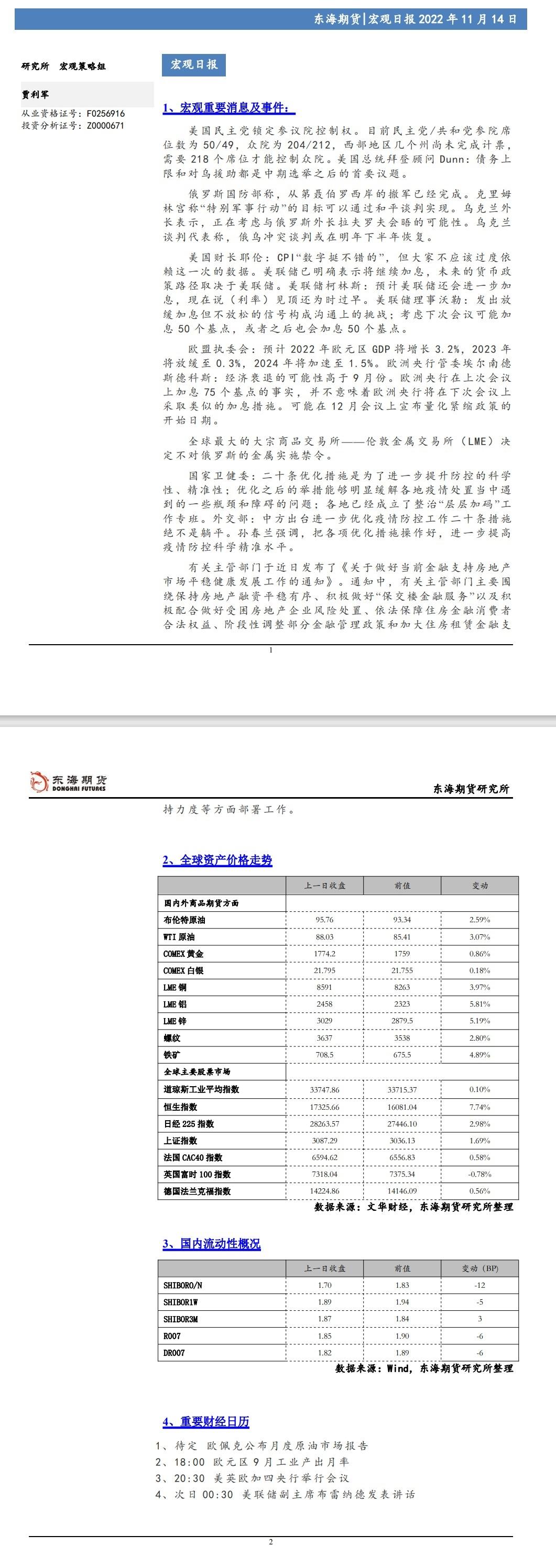 标题:【东海期货11月14日宏观日报】:国内疫情防控措施放松,风险偏好大幅升温