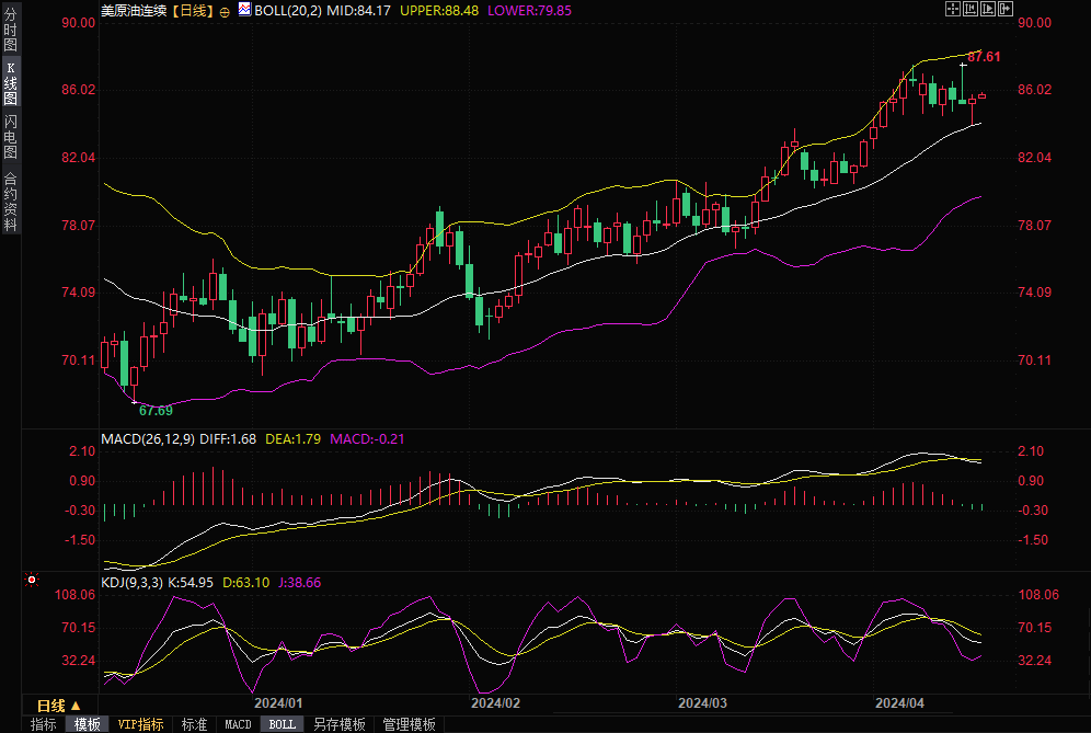 美原油窄幅震荡,目前交投于85.83美元/桶。油价周一探底回升,伊朗周末对以色列的袭击被证明破坏性小于预期,而且以色列美元立即反击,一度缓解了人们对冲突迅速加剧可能导致原油供应减少的担忧,