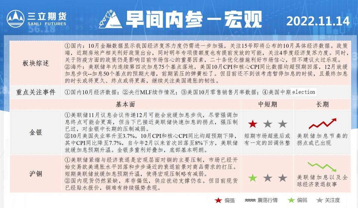 三立期货11月14日早间内参——宏观