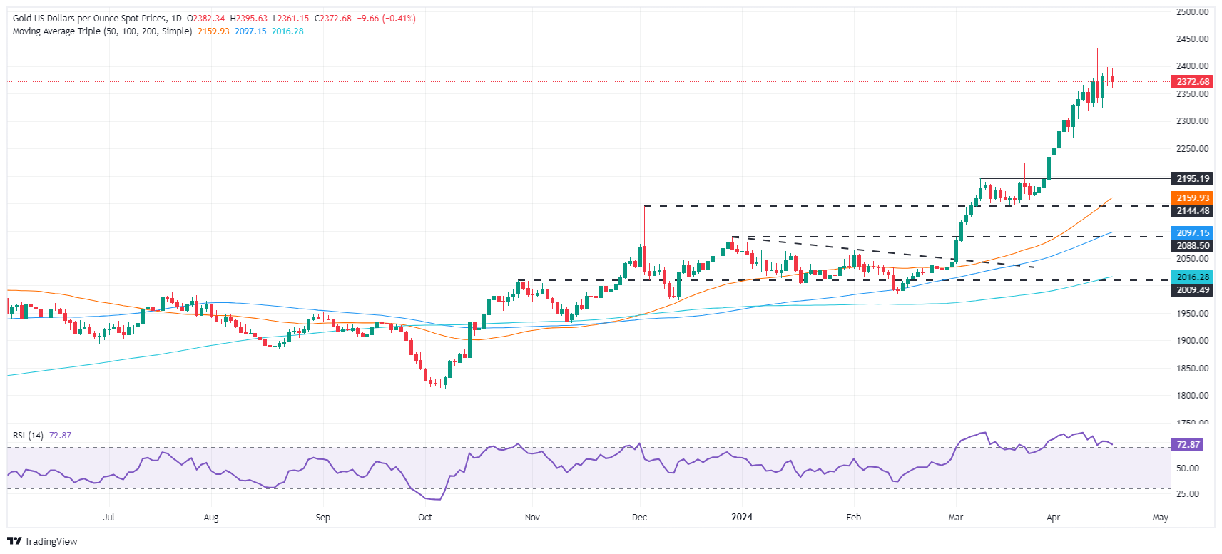 Valencia称,黄金有望出现回调。金价首个支撑位将是2350美元/盎司关口,随后是4月15日低点2324美元/盎司。