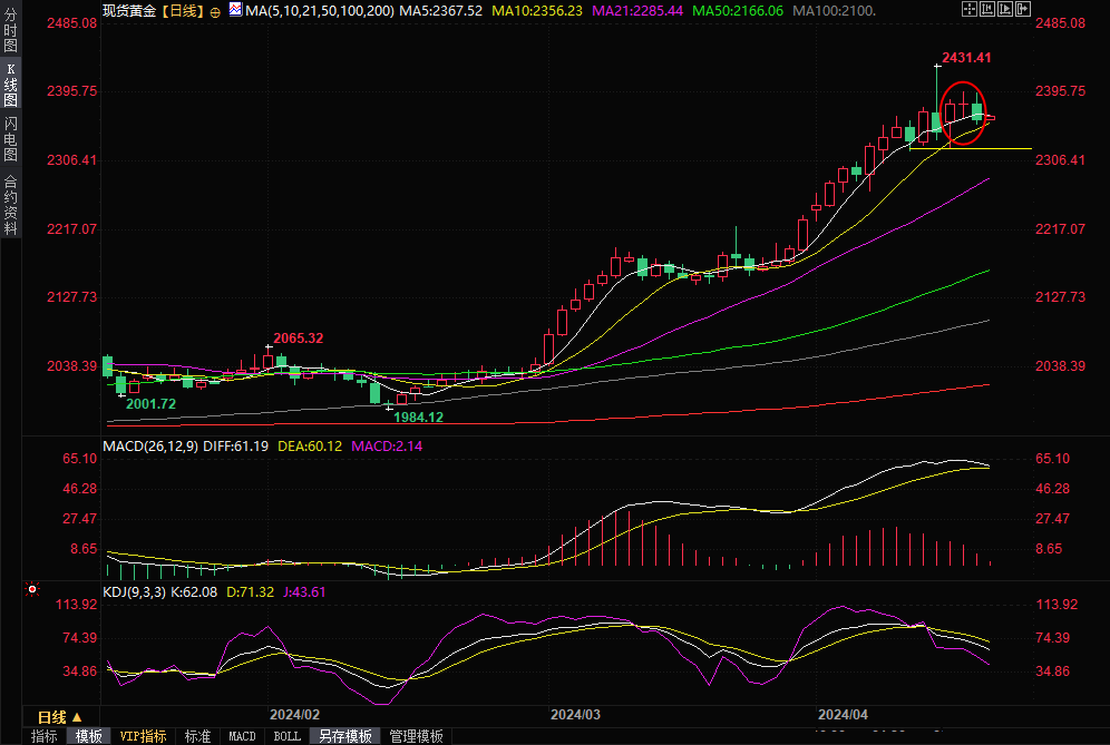 从日线图来看,金价在历史高位附近出现了类似“黄昏之星”的K线组合,暗示金价已经初步见顶,投资者需要提防后市转跌或者深度回调的可能性。不过,Blue Line Futures首席市场策略师Phillip Streible表示:“地缘政治的不确定性继续为黄金提供支撑,如果局势出现任何升级,那么金价可能会升向2500美元区间。”