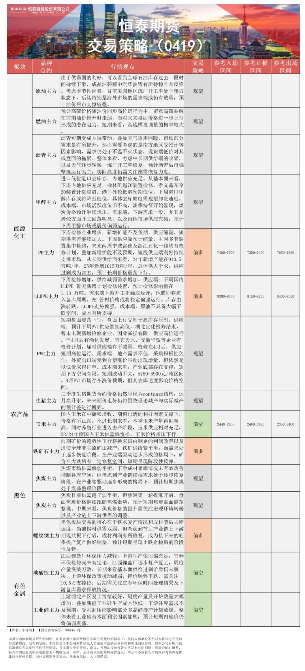 恒泰期货4月19日早盘交易策略