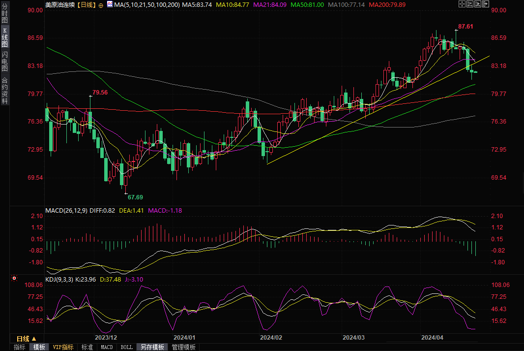 整体来看,中东地缘局势暂时没有进一步恶化,而美联储降息预期推迟,油价短线相对弱势,面临进一步回调风险,美原油关注80整数关口和200日均线的关键位置支撑,上方留意5日均线83.74附近阻力。北京时间08:29,