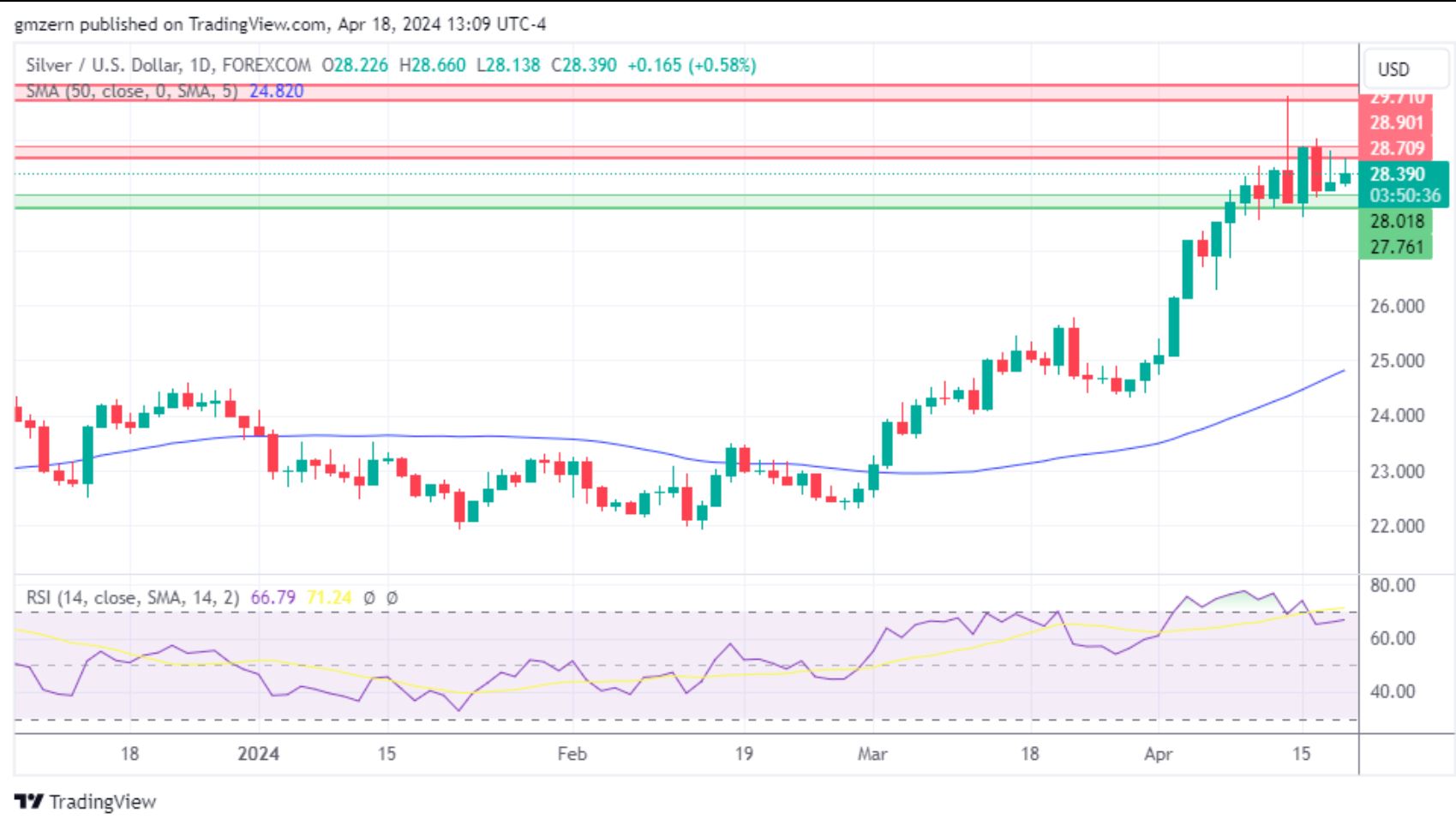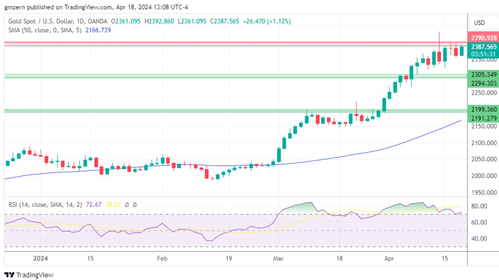 尽管美元走强和国债收益率上升,黄金仍然朝着2400美元迈进。由于地缘政治紧张局势,对避险资产的需求仍然强劲,这对黄金和其他贵金属是利好的。