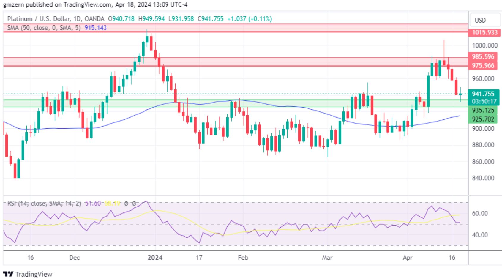 从技术角度看,铂金在925 - 935美元区间获得支撑。最有可能,铂金将需要额外的催化剂才能在925美元下方稳定。