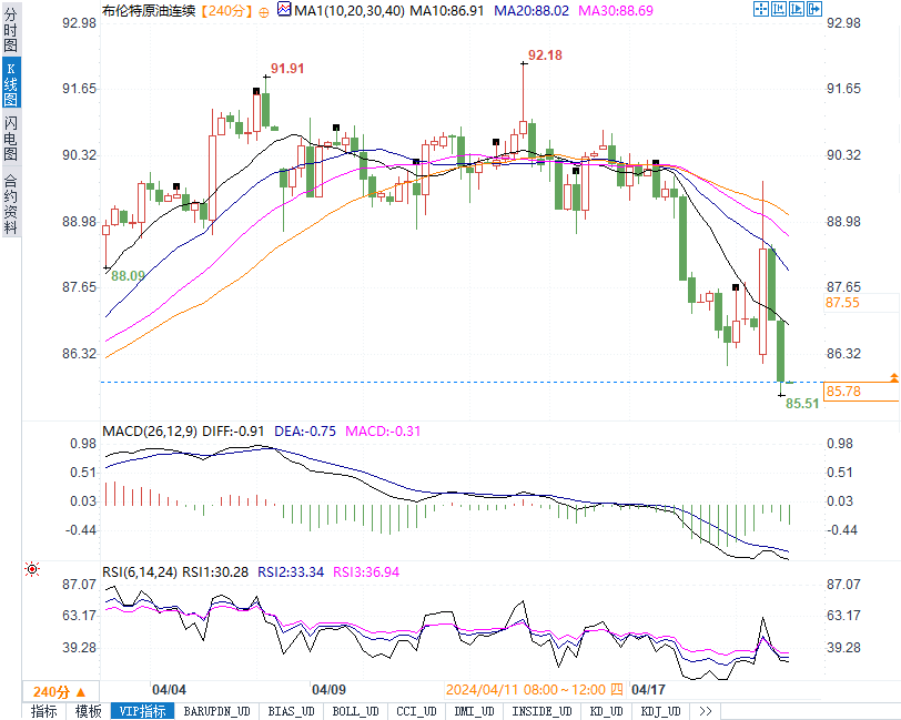 稍早由于地缘政治风险不断上升,布伦特原油重新测试每桶90美元的水平,但这可能是短暂的。地缘政治风险溢价本身通常无法维持大宗商品价格走势,在俄乌冲突等事件之后,大宗商品价格了出现长期波动。伦敦Pepperstone Group Ltd.策略师Michael Brown表示,尽管周五采取的行动减轻了人们对中东爆发更广泛战争的担忧,但这些事件仍令人不安,并将阻止投资者进行大胆押注。在周末之前,没有人会愿意做空原油和避险资产,从风险管理的角度来看,你不能明确地说地缘政治风险已经消除。因此,我们可能会看到另一轮去风险化。归根结底,这是人们不愿意接受过多的风险敞口。