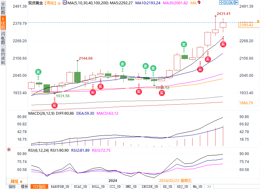金价实现连续第五周上涨,这是自2023年1月以来最长的连续上涨趋势。尽管美元和债券收益率强劲上涨,而2024年降息的预期却大幅下降。