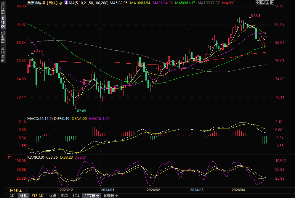 美原油连续日线图,来源:易汇通)