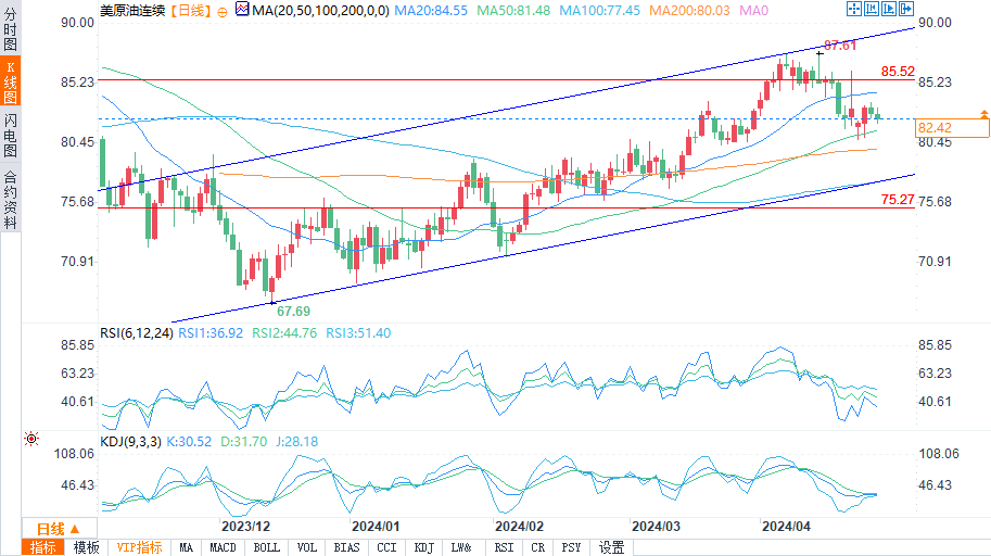 汇通财经APP讯——周四(4月25日)美盘时段,WTI原油盘中由涨转跌,盘中交投于82.43美元每桶。