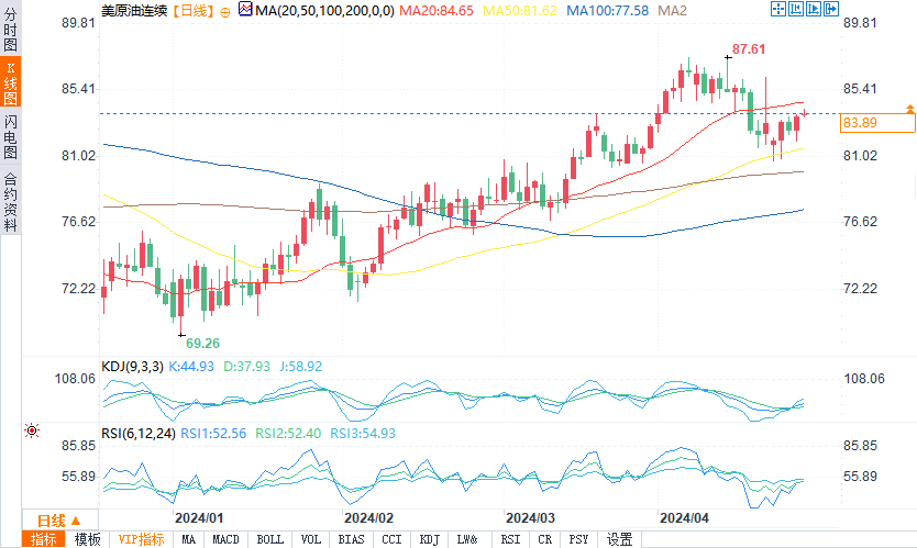 短期波动区间为87.13 - 80.70美元。其50%斐波那契回撤位83.92美元决定着市场的近期走势。