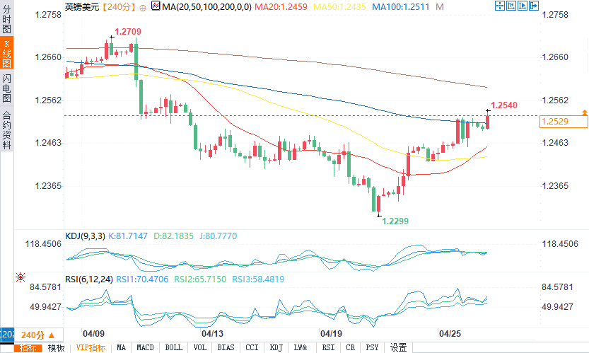 4小时图中,枢轴点位于1.25228美元。即时阻力位在1.25786、1.26401和1.27087,即时支撑位在1.24260,随后是1.23656和1.23023。