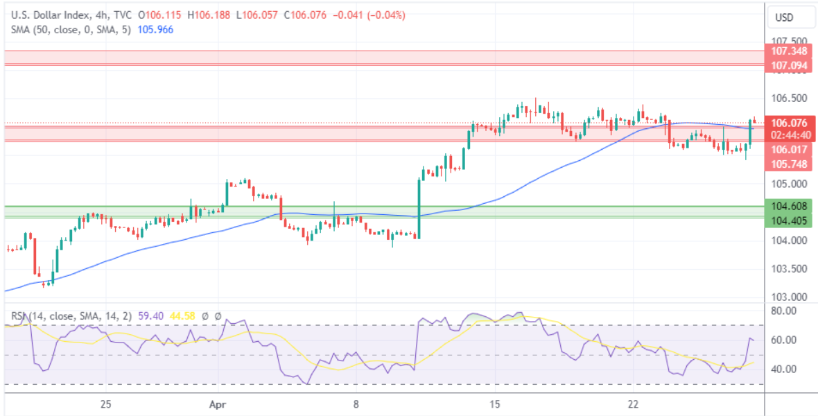 美元指数将迈向下一个阻力位,该阻力位位于107.10–107.35区间。