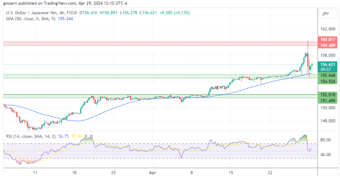 日本央行很可能会尝试守住160.00水平。美元/日元将在支撑位154.50 – 155.00和阻力位159.50 – 160.00之间的宽阔交易区间内保持波动。