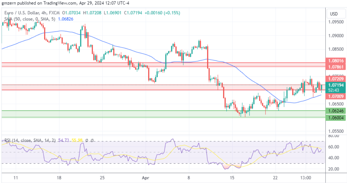 如果欧元/美元成功稳定在1.0700 – 1.0720的阻力位之上,它将迈向下一个阻力位,即1.0785 – 1.0800区间。