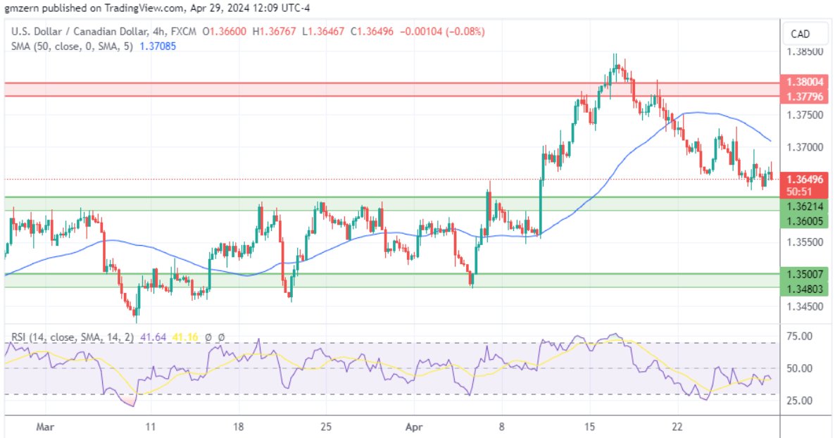 从技术角度来看,美元/加元正朝着最近的支撑位1.3600 – 1.3620迈进。