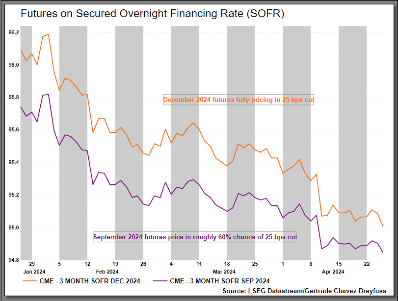 市场定价显示,美联储预计将在9月份首次降息,而几周前才预期6月份开始降息,预计今年的降息幅度将略高于30个基点。