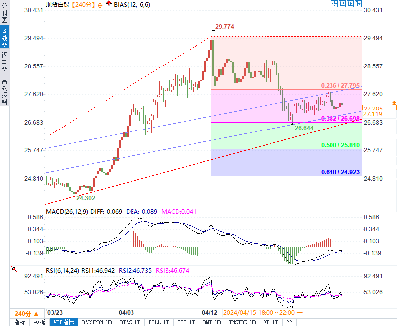 当前走势白银价格也显示出上涨潜力,目前徘徊在26.93美元的枢轴点之上。然而,市场对美国利率持续走高的预期可能导致持有白银的机会成本增加。