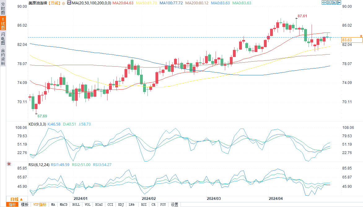 标题:WTI原油技术分析:国际油价回落,关注83.20美元得失