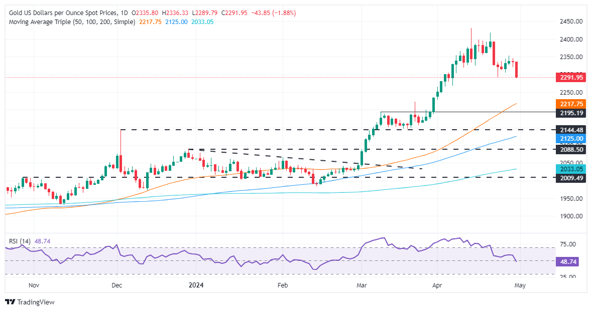 周二(4月30日),现货黄金暴跌近50美元,收盘跌破2300美元/盎司;周三亚市早盘,金价交投在2288美元/盎司附近。FXStreet分析师Christian Borjon Valencia最新撰文,对金价走势进行分析。