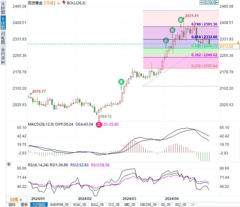 若金价在当日交易结束时确认跌破2330美元/盎司的水平,这可能标志着黄金价格将进入一个新的下降波段。在这一潜在的下行趋势中,上周触及的低点2291美元/盎司以及重要的心理关口2250美元/盎司,可能会成为买家考虑的潜在支撑水平。