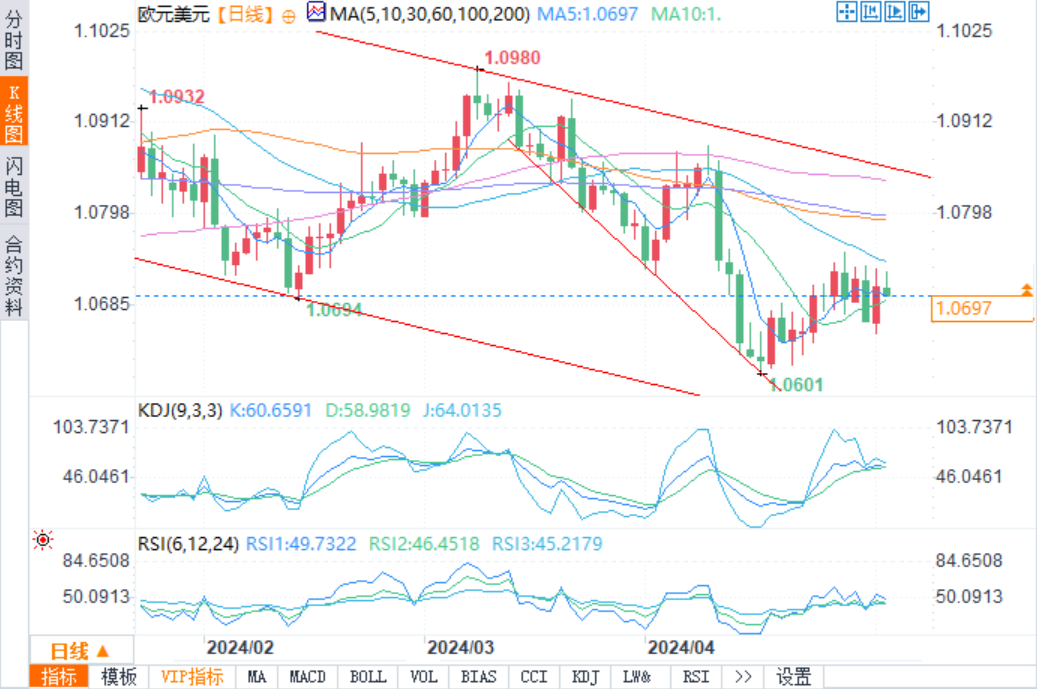 北京时间19:28,欧元/美元报1.07,跌幅0.10%。美元/日元报154.929,涨幅0.21%。