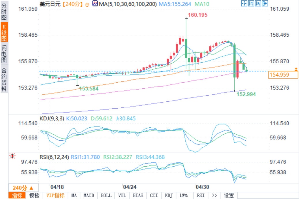 汇通财经APP讯——周四(5月2日)欧盘时段,欧元/美元小幅走跌,交投于1.07附近。美元/日元交投于155上方。