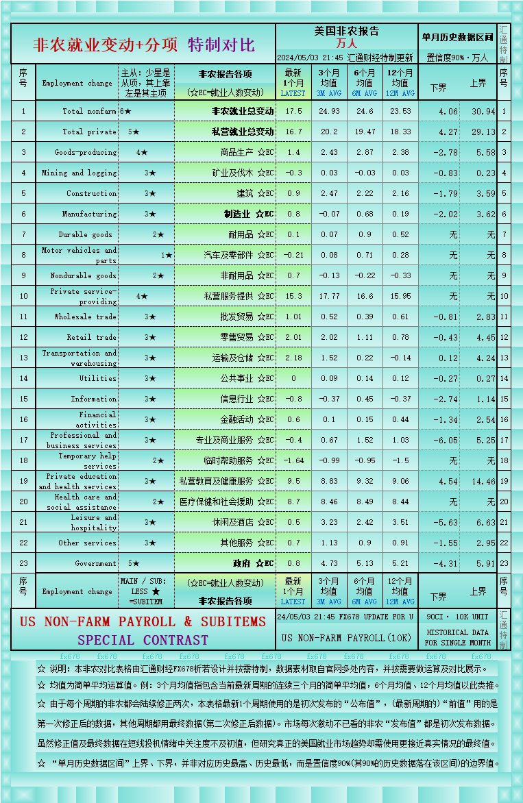 标题:研究非农“细分项”的看过来,一张图详解非农及各行业分项