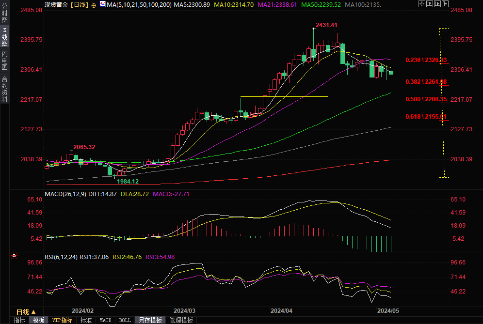 受到中东局势爆发和央行强劲买盘的推动,金价在4月创下2431.41美元的历史新高,此后,避险黄金已经回落了5.7%,约合140美元。