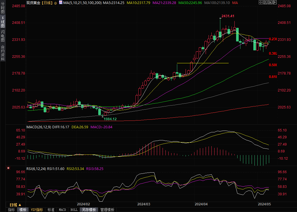 现货黄金现报2322.81美元/盎司。