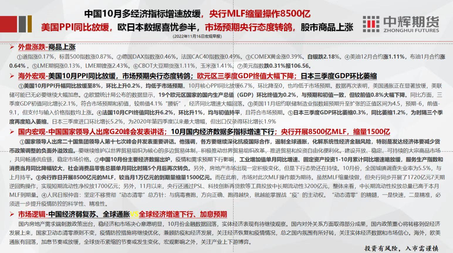 中辉期货宏观早报:全球货币紧缩的节奏或发生变化,关注产业上下游博弈