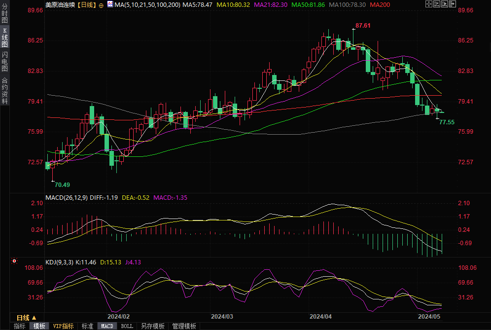 布伦特原油期货周二收低0.17美元,结算价报每桶83.16美元,盘中一度创3月13日以来新低至82.41额米有/桶;美国原油期货周二收低0.10美元,结算价报78.38美元,盘中一度创3月13日以来新低至77.55美元/桶。