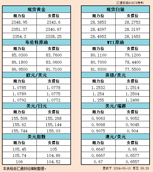 标题:5月10日亚市支撑阻力:金银原油+美元指数等六大货币对