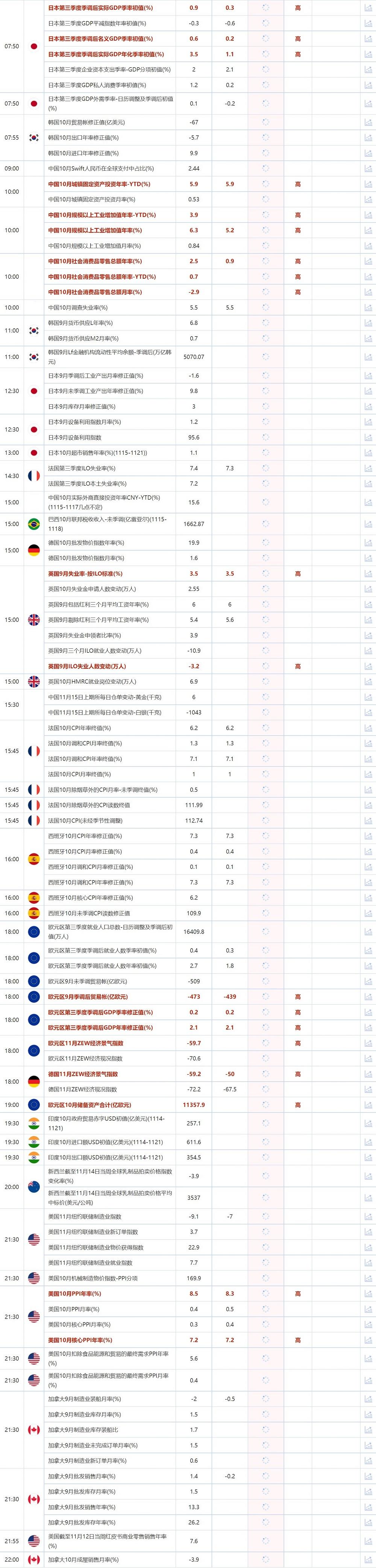 标题:11月16日重点数据和大事件前瞻