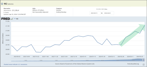 标题:专家称美国货币供应激增,意味着美联储2024年不会降息!