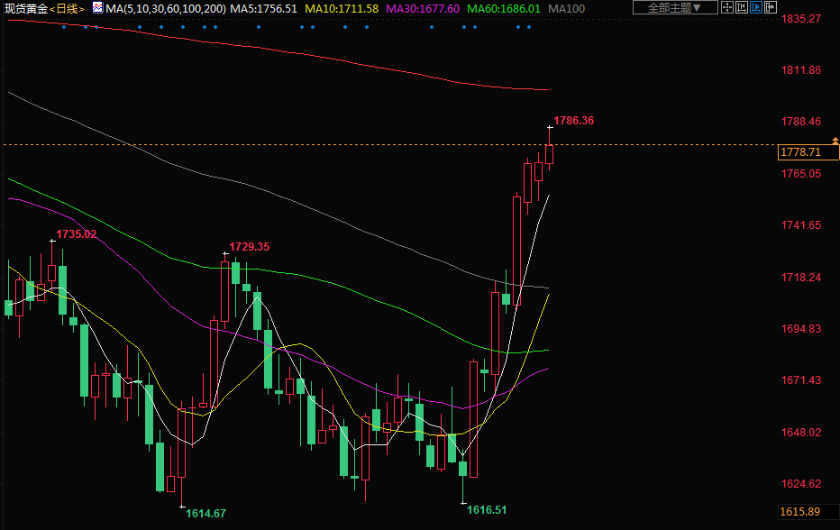 现货白银下滑1.8%至每盎司21.56美元,铂金下跌0.4%至1013.25美元,钯金上涨2.9%至2085.52美元。