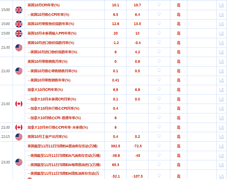 美元指数下跌了0.23%,在有关波兰的报道后一度最高上涨了0.42%。在美国经济数据显示美国通胀放缓后,爆炸的消息抹去了欧元早些时候的涨幅。美国劳工部的数据显示,截至10月的12个月中,美国生产者物价指数(PPI)增长了8.0%,而经济学家的预期为增长8.3%,9月为8.4%。