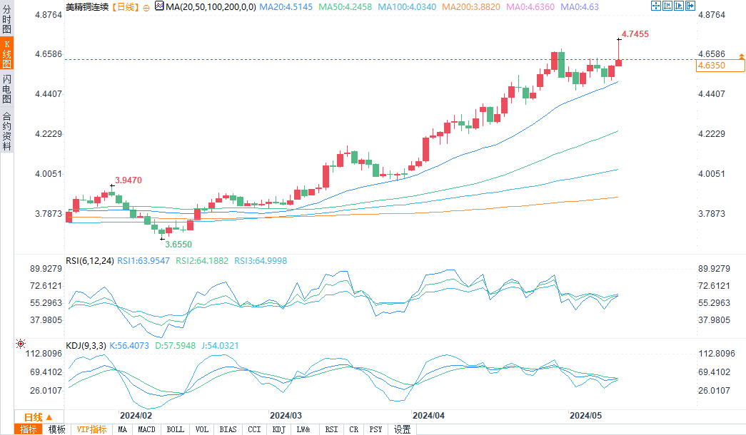 标题:美元走弱和中国需求预期推动铜价触及2年高点