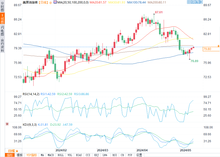 周五(5月10日)欧盘时段,原油期货本周将强势收市,WTI原油目前的交易价格接近每桶80美元。油价的上涨受到了美国和中国这两个全球最大的原油消费国不断增长的需求以及中东地区持续不断的地缘政治冲突的共同影响。