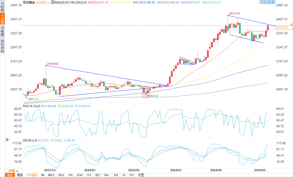 受央行举措和美国就业数据走弱的提振,黄金交易走高。另一个推动金价上涨的潜在因素是以色列进军拉法。每当局势升级或冲突进入新阶段时,市场就会在周末前增加黄金头寸,作为对冲。