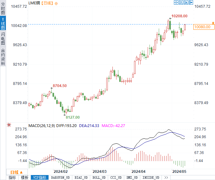 涨1.23%,报10072.00美元/吨,LME铝下跌0.55%,报2554美元/吨,LME镍下跌0.08%,报10960美元/吨,LME铅涨0.58%,报2246美元/吨,LME锌涨1.24%,保2956.5美元/吨,LME锡涨1.01%,报32850美元/吨。