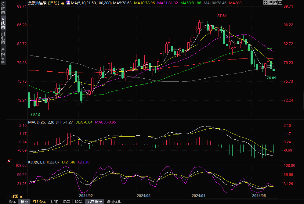 尽管能源服务公司贝克休斯的数据显示,上周美国活跃钻机数减少三座,降至496座,为11月以来最低,有望限制油价的下跌空间。此外,欧洲央行4月会议记录显示,欧元区通胀率有望在明年回落至2%,因此欧洲央行决策者上月得出结论,他们将有可能在6月降息。这也有望给油价提供一些支撑。欧洲央行上月维持利率在纪录高位不变,但明确表示下一步将是降息,最有可能在6月6日,前提是工资和通胀数据保持在当前相对良性的轨道上。