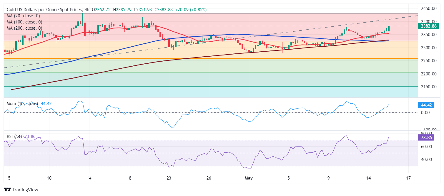 周四(5月16日)亚市盘中,现货黄金延续昨日升势,金价目前最高触及2397.44美元/盎司,为4月19日以来新高。FXStreet首席分析师Valeria Bednarik撰文,对黄金技术前景进行分析。