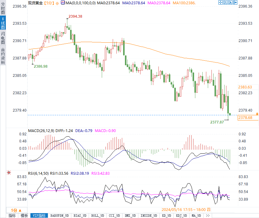 现货黄金在数据公布后短线跳涨5美元最后迅速回落6美元,日内转跌,跌幅0.12%,失守2380美元关口。