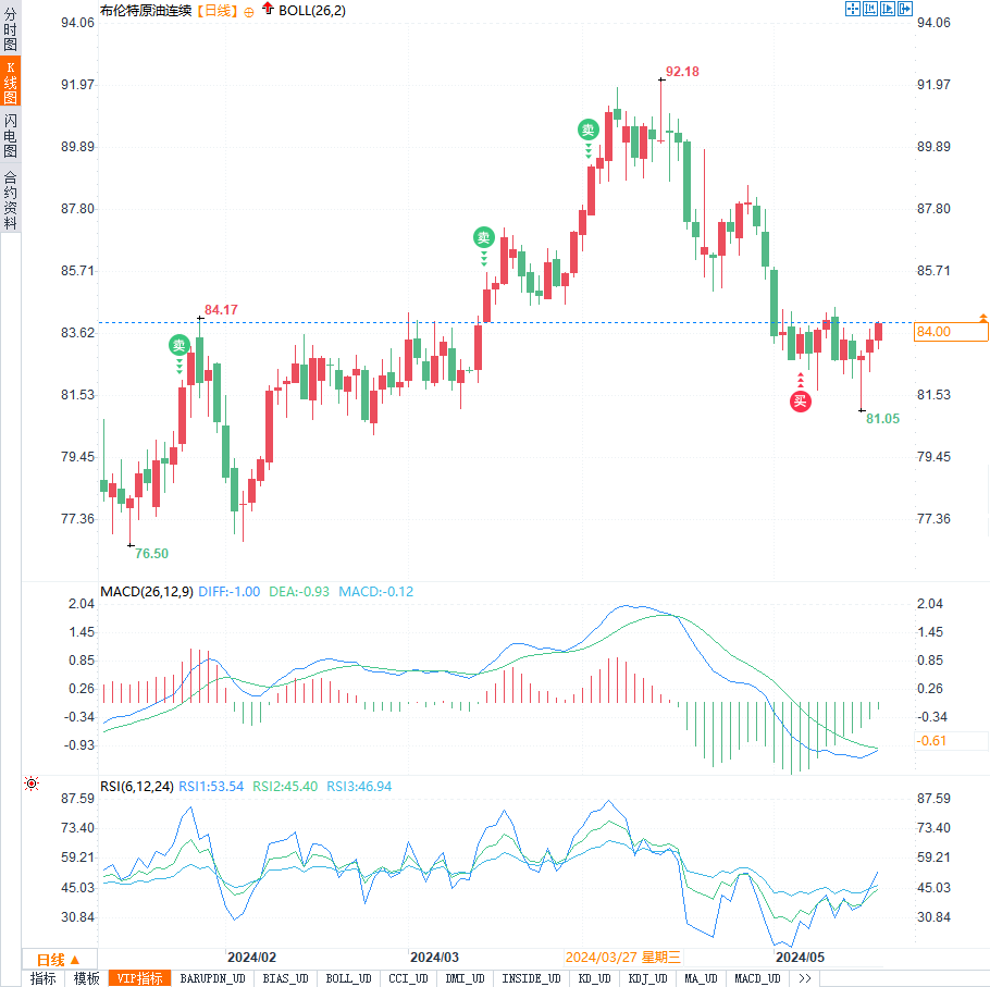 布伦特原油上涨约1%,报收于83.94美元/桶。这一上涨趋势的背后,是全球两大石油消费国经济指标的向好,以及北美地区小长假出游人数的增加,这些都推动了原油需求的预期增长。