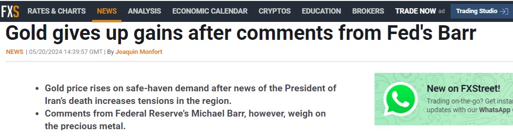 伊朗总统去世影响短暂,美联储官员讲话打压多头士气,分析师:金价后市仍可能剑指2500