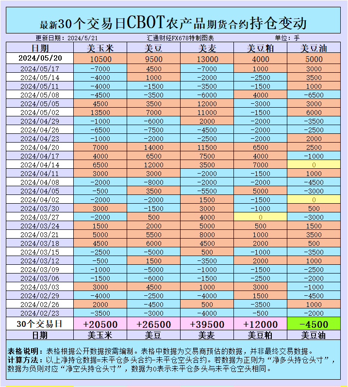 CBOT持仓:基金增芝加哥谷物净多头,俄乌谷物均面临灾害天气,美播种进度超预期