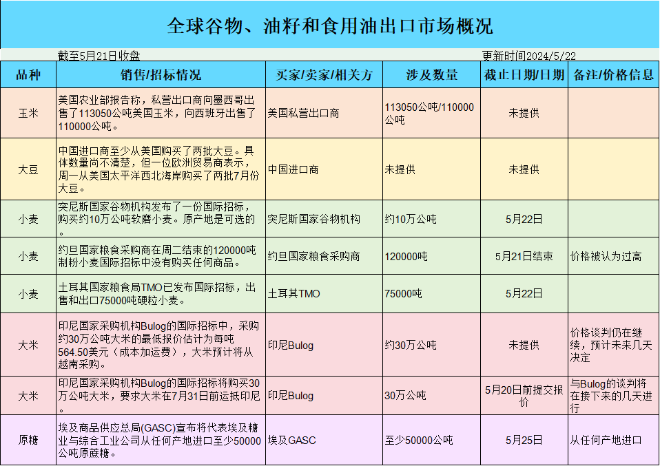 美国现货玉米、大豆在河流码头的出价上涨,其余价格保持稳定