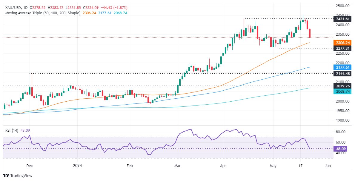 Valencia称,下行方面,金价的支撑在5月8日低点2303美元/盎司。一旦跌破这一水平,50日简单移动平均线(SMA)2307美元/盎司将是下一个看空目标。