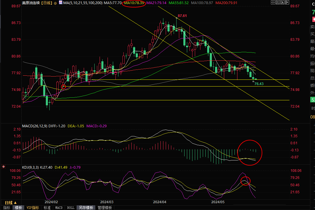美原油延续跌势,目前交投于76.77美元/桶附近。油价周四连续第四日下跌,因市场担心如果通胀飙升,美国借贷成本可能会再次上调,如此一来可能损害石油需求。